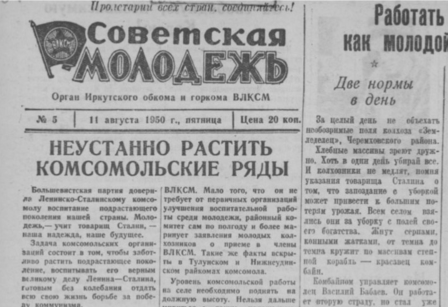 Почему легендарная иркутская газета «Советская молодёжь» не выходила с 1941 по 1950 годы?